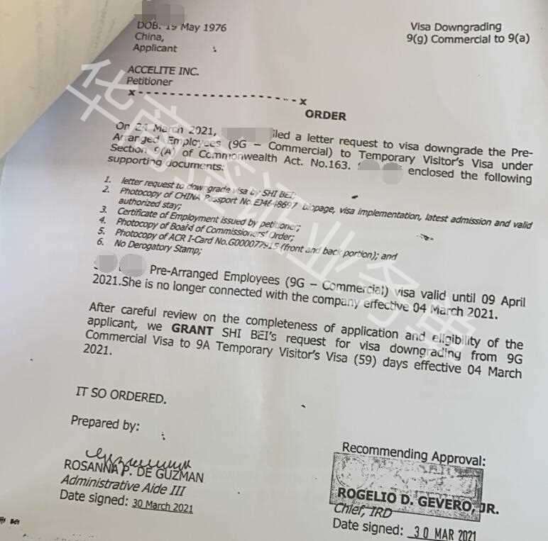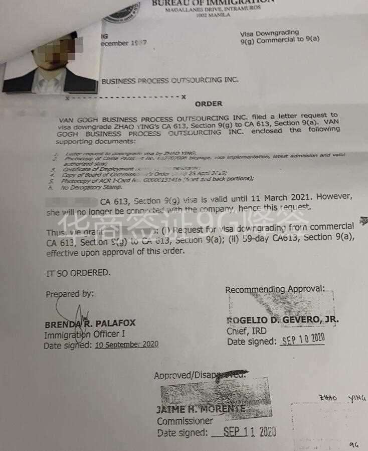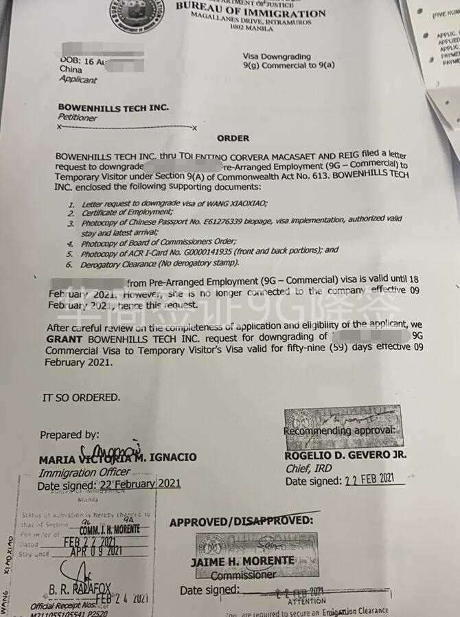 菲律宾9G工签降签章样式图片讲解图片