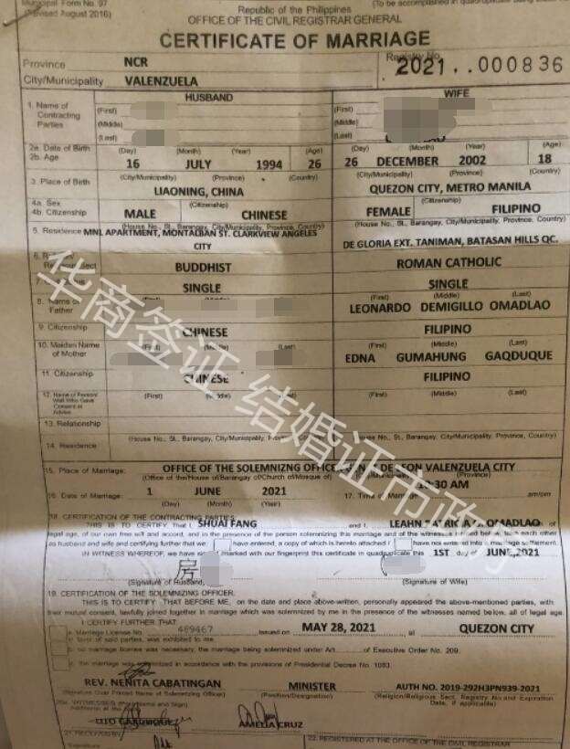 菲律宾结婚证图片样式讲解