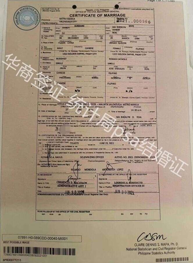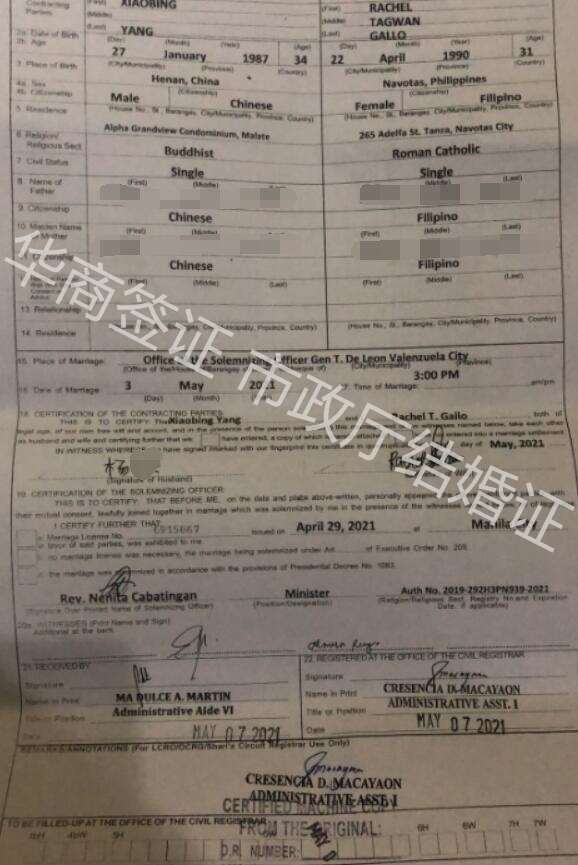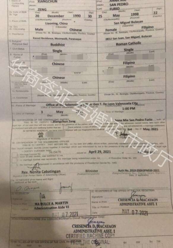 菲律宾结婚证又分为几种,如果是想要结婚入籍的客户,更容易搞混。菲律宾结婚又分为市政厅认证结婚证、统计局认证的psa结婚证、13a结婚,都可以在我们网站上看到详细说明。这些就是一些给予大家用于对比和参照的结婚证样本图。