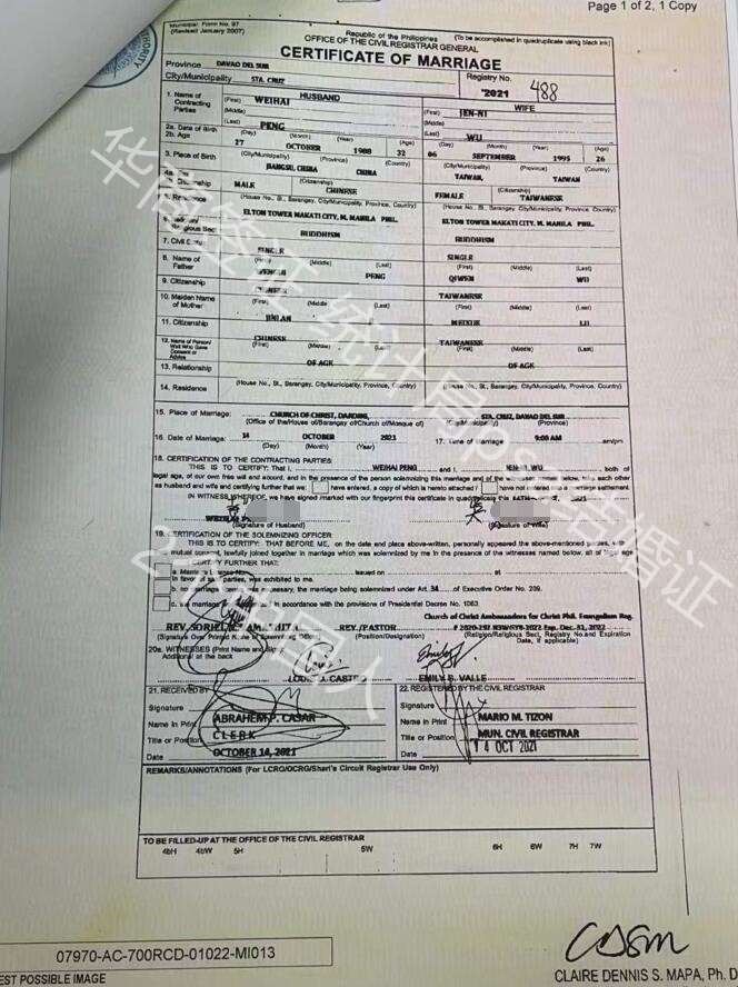 菲律宾结婚证图片样式讲解图片