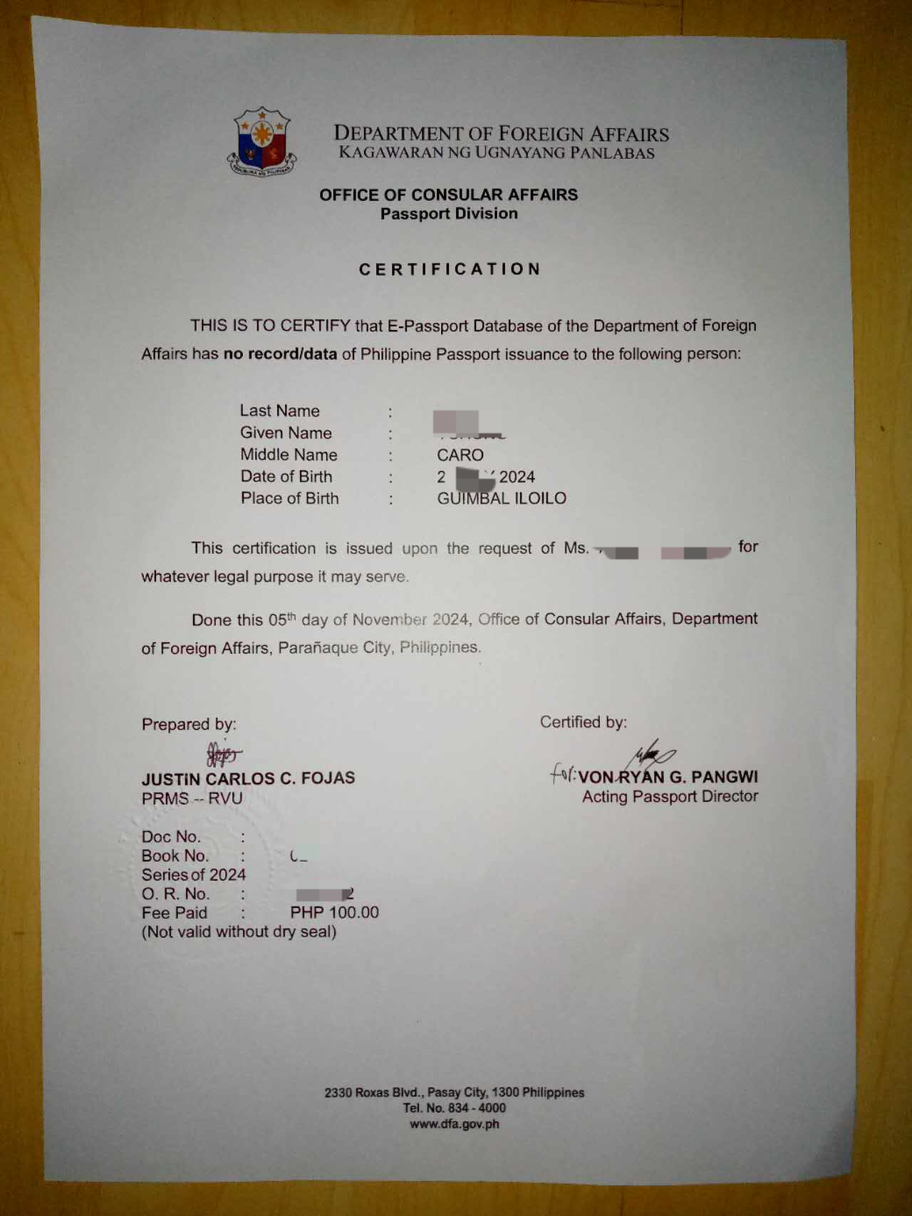 给我孩子办的无菲籍证明号了,现在可以给孩子办理中国护照了,真快他们这,付完签刚好一周就能出了,我见他们这带孩子回国,带太太回国的业务还挺多的,挺专业到位