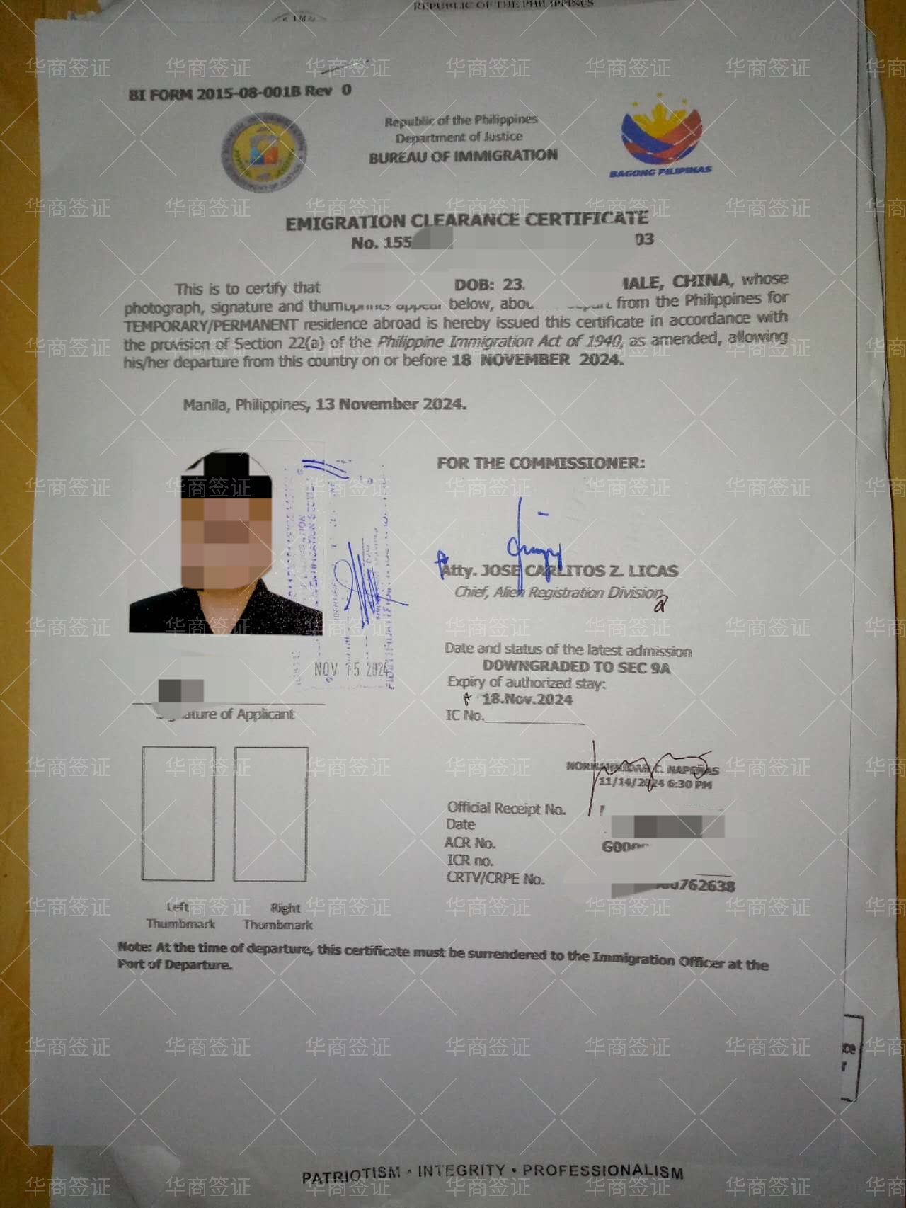 华商真的太牛了。 就3天,提交资料给他们帮我做手续就3天就批了。 之前找其他人做了半个月,不是少这个资料就是少那个资料,最后我都没有。后面我找华商,他们可以帮我出一些我们没有的手续。 3天就批。真的太让我惊喜了。相当Nice,这种能力马尼拉很少。 这个做好了,以后所有手续都给他们做。