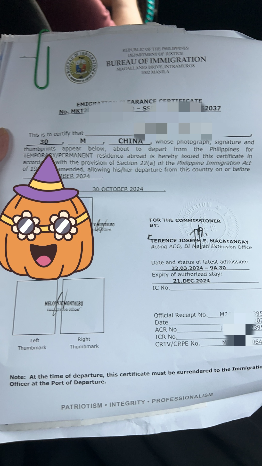 今天去NBI了好多人,看来现在大家在处理手续,不过还有找华商办你到了他们有人来门口接你,省挺多麻烦半个小时就搞完了,很快