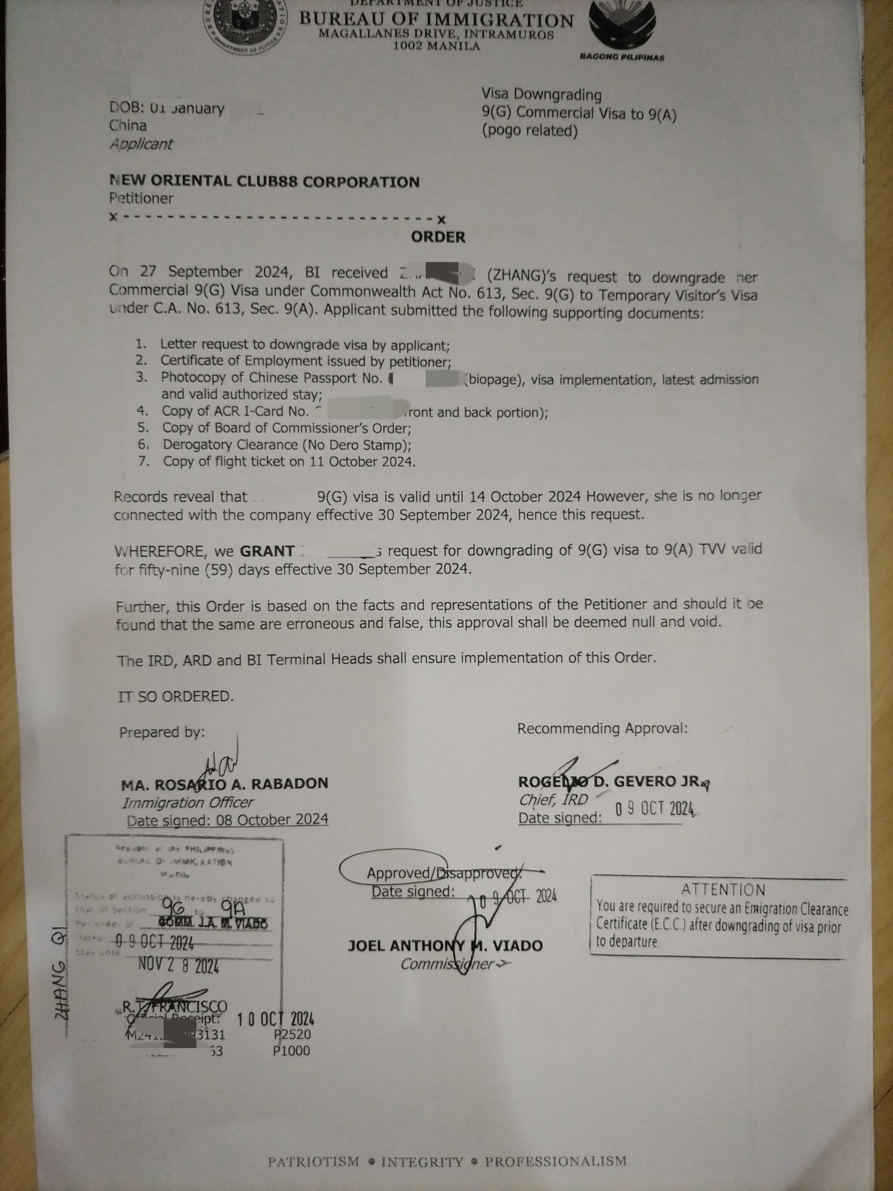 办理了降签,两个星期多就拿到了,特别好因为现在菲律宾有些工签有被拉黑的风险,后续啊什么的好多问题,华商的客服都一一给我讲解清楚了,又打字又语音的,需要怎么做都给你讲的明明白白