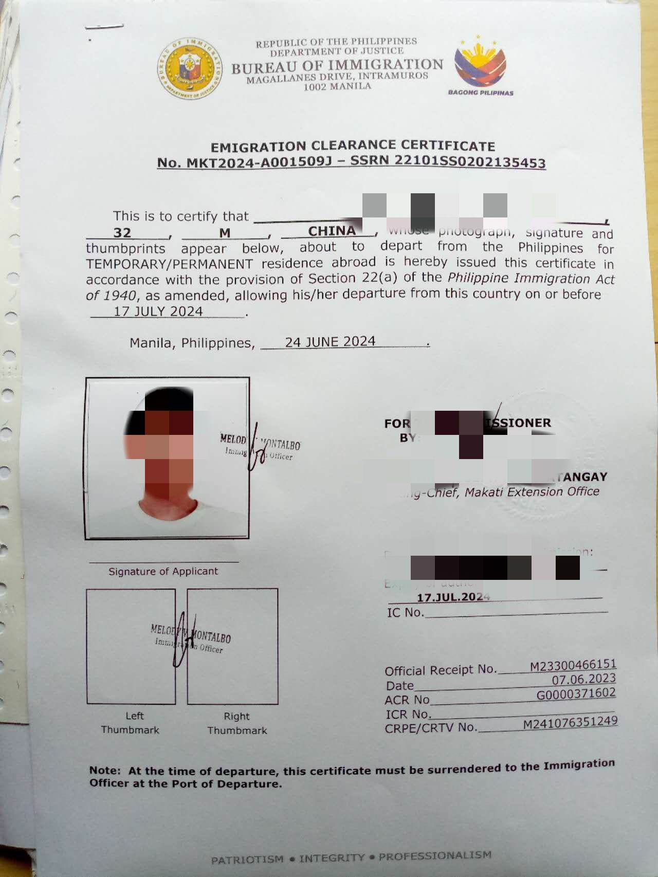 NBI都拿到手了,逾期MR盖章降签一套手续下来都是华商签证办的,可以相信,满意