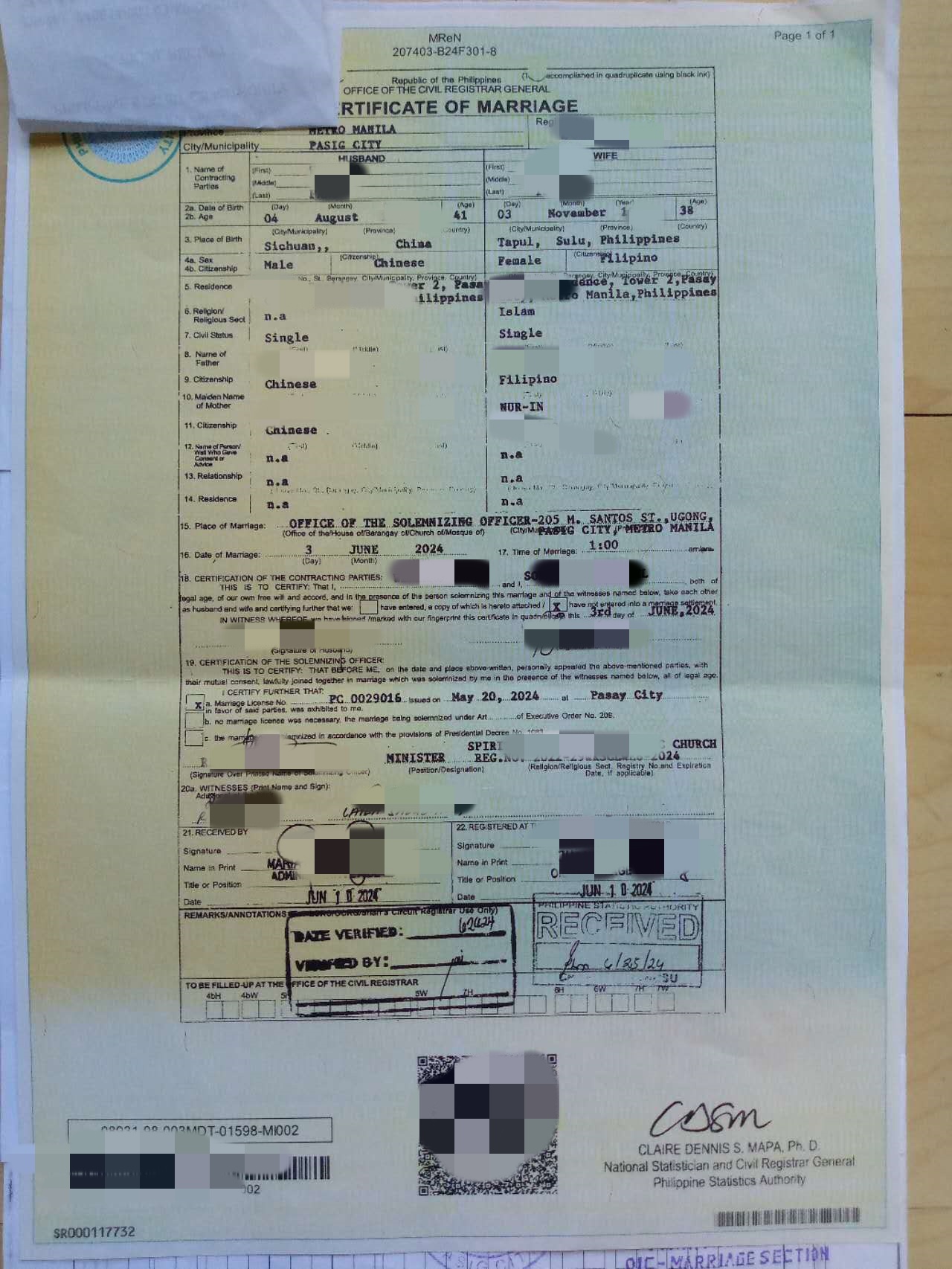 结婚证拿到了,华商签证确实值得信赖,服务也很到位,也不需要本人出面很方便,现在PSA也在这边做