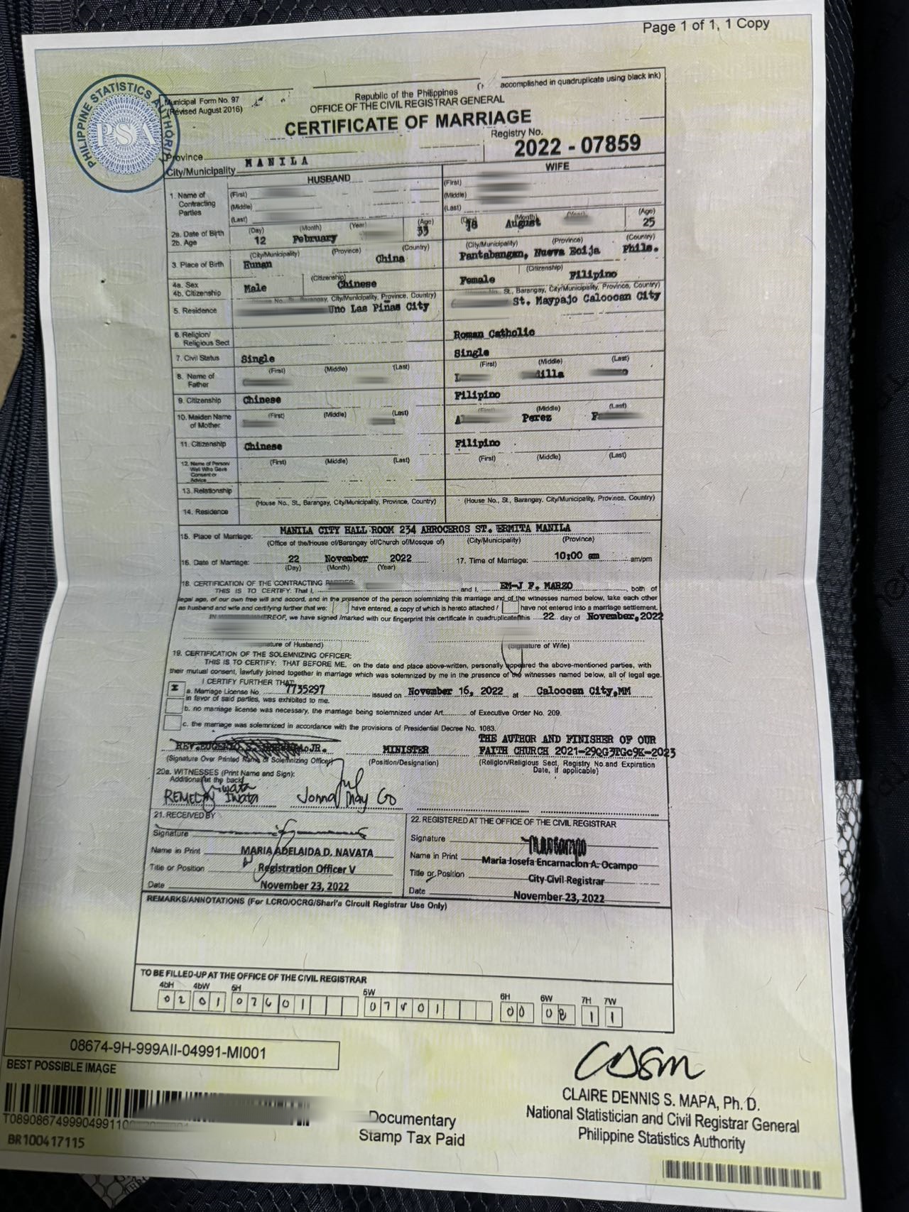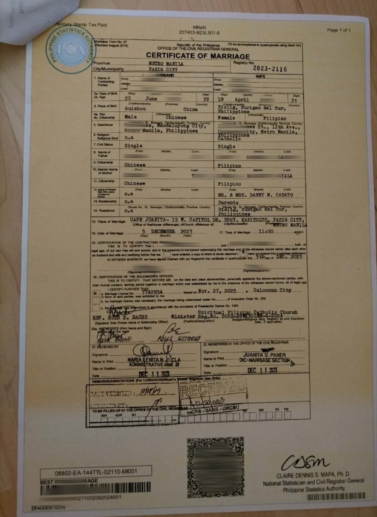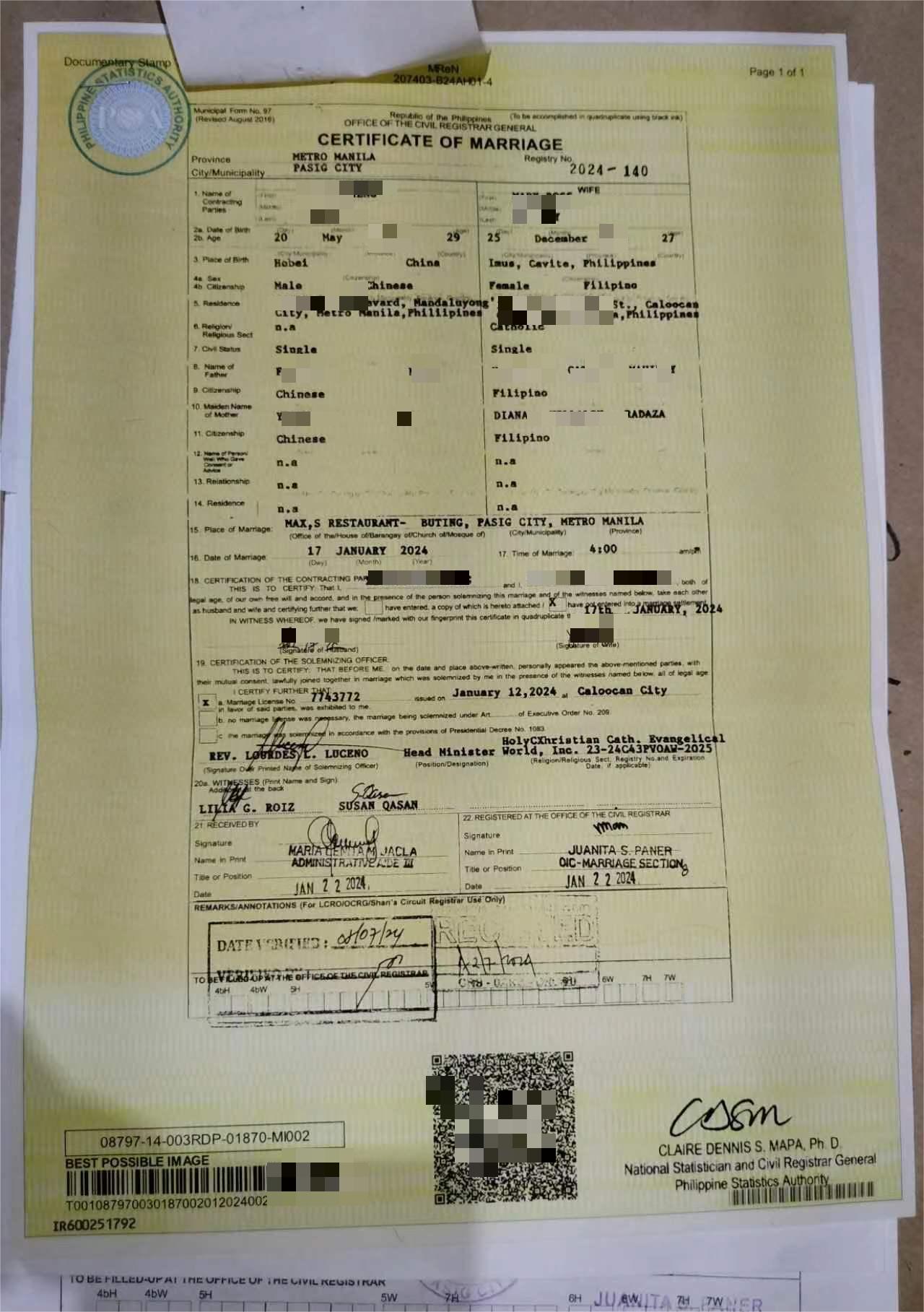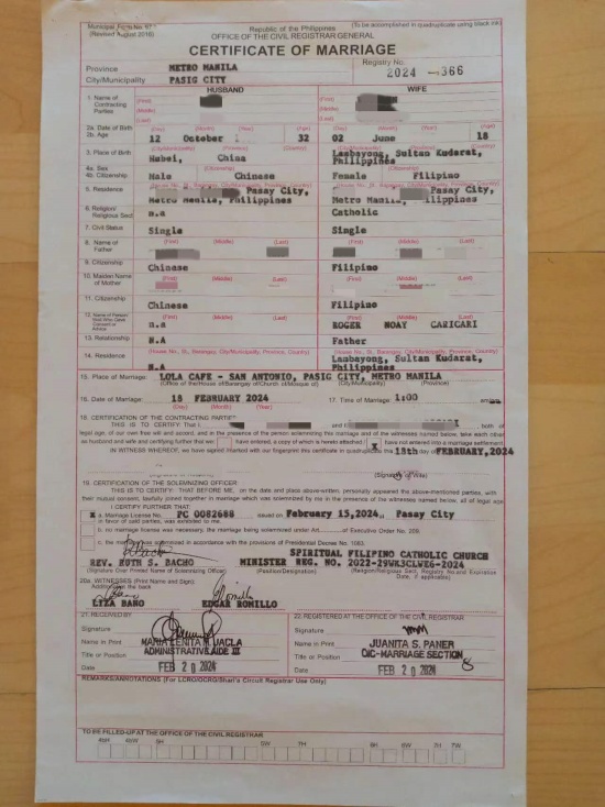 拿到我的结婚证PSA了,挺快。现在结婚证补办护照的用结婚证PSA,护照我也在这边办理了,就等他们办好我的护照了