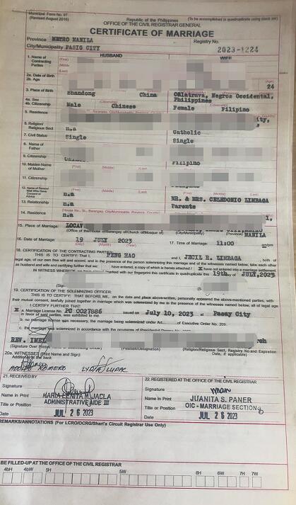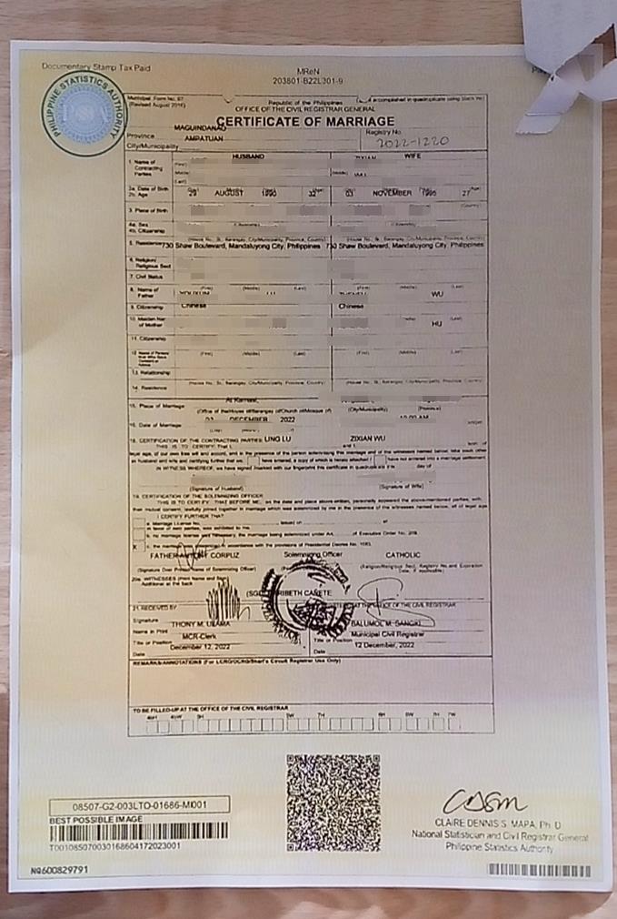 办理菲律宾的结婚证绝对OK的,我办理是市政厅和统计局的结婚证,一个月左右我们就拿到原件了,还是非常感谢华商的,在国外有特别多不了解的,我都是去找华商的客户了解,好评推荐。