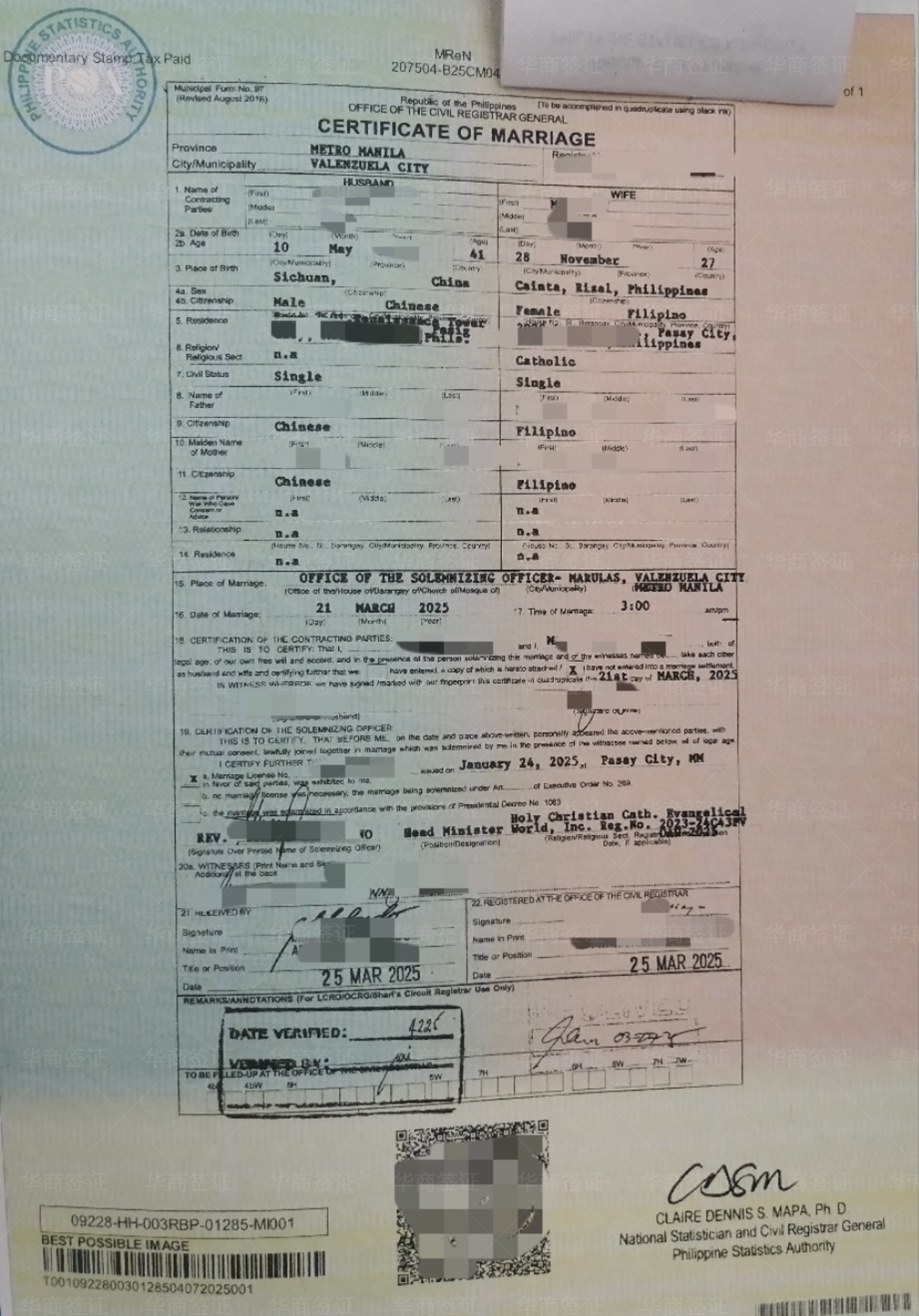 华商签证菲律宾业务包含: 续签,移民,租房,接机,工签,公司注册,结婚证,双认证、翻译,探亲签,补办护照/补办旅行证。部门涉及:外交部,移民局,警局,NBI,统计局,移民署,监狱,拘留所,律师所,机场,洗黑等100多个项目,都可以一条龙为您服务到底。