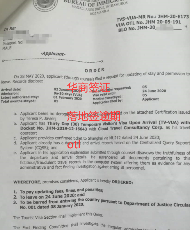 菲律宾落地签逾期: 疫情期间落地签逾期回国全部要办理otl,落地签逾期被移民局拉黑,需要办理遣返。 非疫情期间请联系客服,根据实际情况客观回复。